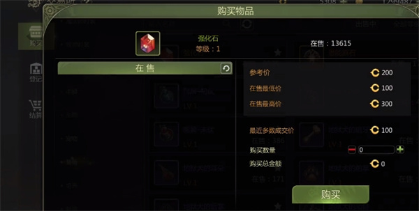 列表项目是交易所的基本操作之一。玩家可以选择要在摊位界面出售的物品,设置单价和数量,然后在支付费用后将其放在架子上。