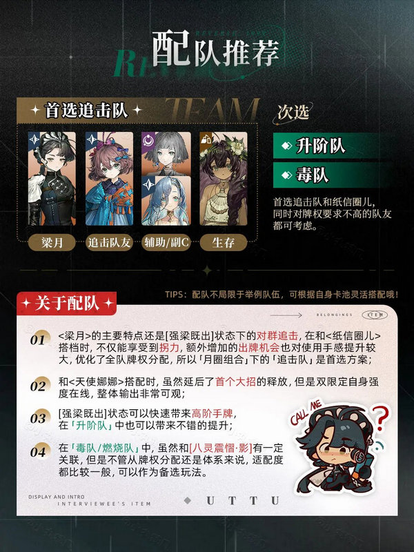 Liang Yue的核心机制都在仪式上,确保全面报道仪式的优先事项很高。但是,Liang Yue缺乏热情的逆转手段,因此动作点非常苛刻,不能用作低卡助手/副手,并且基本上只能用作团队的主要力量。