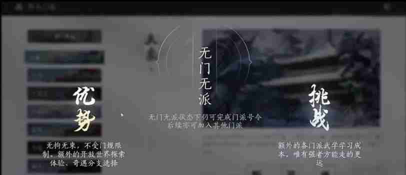1. 无门无派:自由自在,不受教派规则的束缚,可以自由探索世界。想体验不一样的武术吗?没问题!但这需要秘密学习。